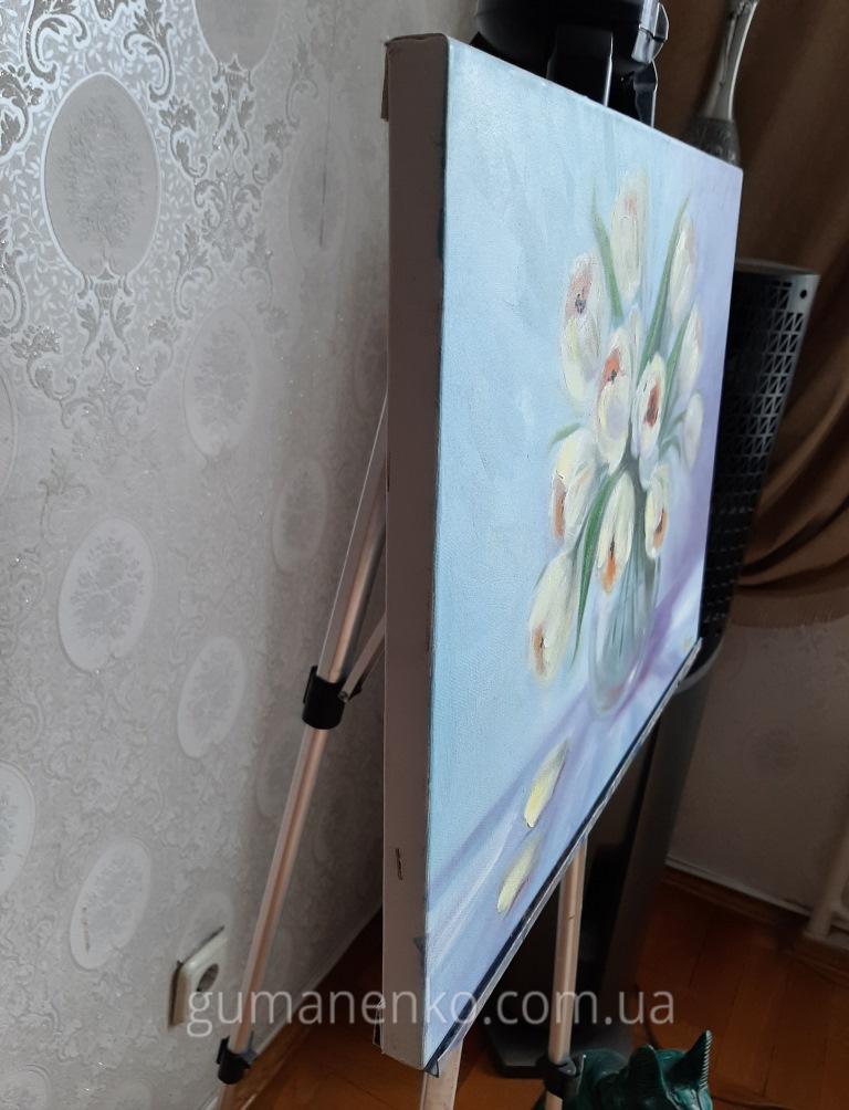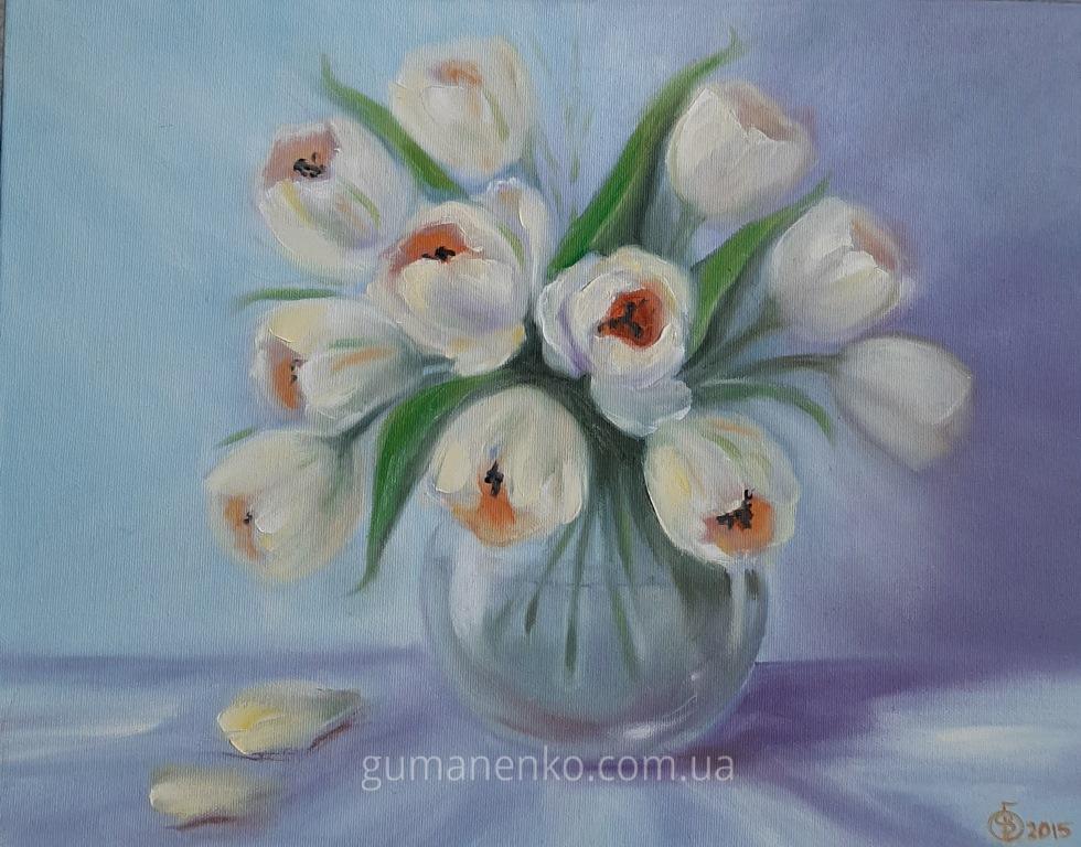 Картина "Нежные тюльпаны в стеклянной вазе" 45х35см., холст, масло.