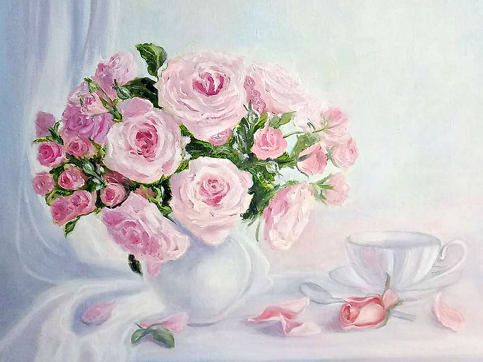 Картины Виктории часто изображают цветы в вазах, фрукты и животных, что придает ее работам живость и динамичность. Она мастерски использует светотень, создавая глубину и объем в своих произведениях. Пастельные тона, характерные для ее палитры, придают картинам мягкость и утонченность, что делает их привлекательными для широкого круга ценителей искусства.