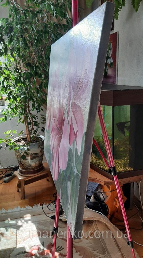 Картина маслом "Розовый гибискус" – это нежное и утонченное произведение, передающее красоту экзотического цветка в его ярких розовых тонах. Каждый лепесток гибискуса проработан с вниманием к деталям, создавая ощущение объема и живости. Эта картина добавит в ваш интерьер нотку тропической свежести и элегантности, наполняя пространство теплом и гармонией.